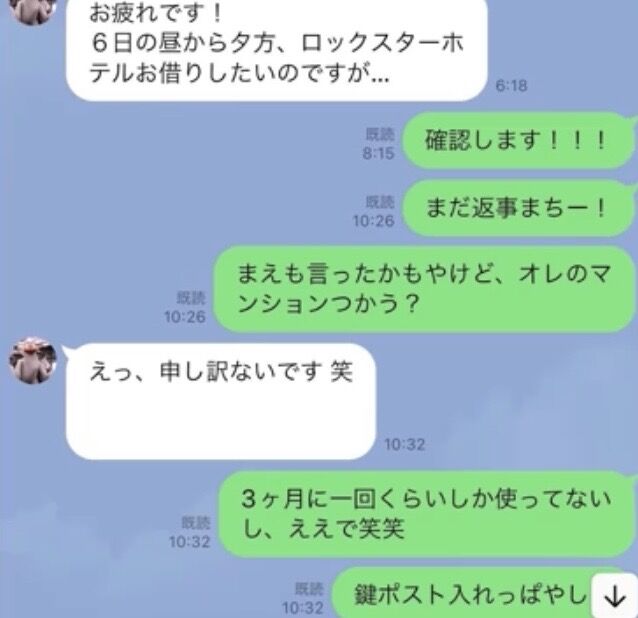 例えば「昼の12時から15時まで部屋使えますか?」とか、一歩言い方間違えればラブホテルみたいな扱いをしててんけども