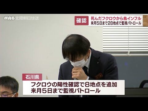石川県は、8日に金沢市で回収されたフクロウ1羽の死骸について、家畜保健衛生所で簡易検査を実施したところ、A型鳥インフルエンザウイルスの「陽性」と確認されたと発表した。