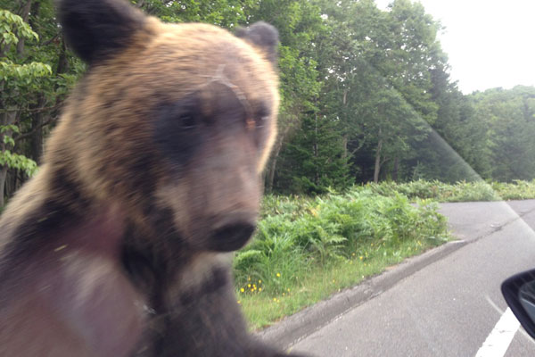 【北海道】ヒグマが車内のぞきこみ、ドライバーと一触即発 知床峠